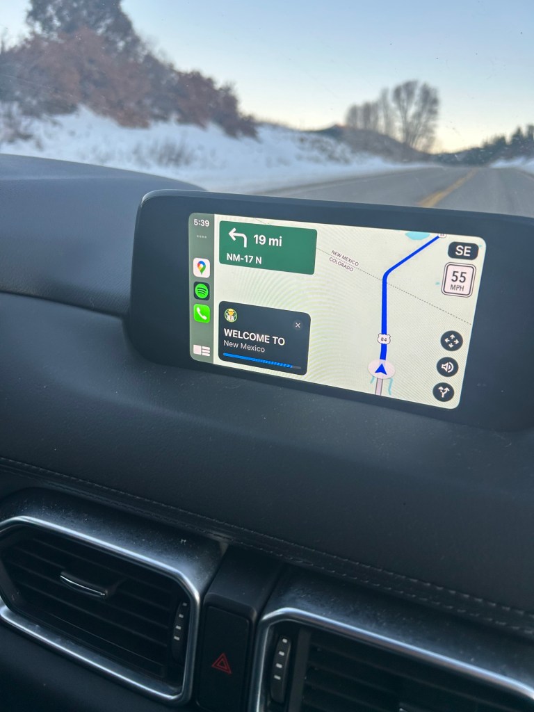 The drive was beautiful, and capped off our already checked off views of sprawling plains, distant mountains, and red rocks with some lush greenery in the San Juan Forest. Entering into New Mexico, the Land of Enchantment, we noticed with immediate effect the magic take hold. The nostalgic red brown soil brightened up the side of the road, and the forested white cap hills a few miles away were catching the rosy sunset. Iβm sure it is a very fair mental picture of New Mexico to be arid and flat. But this colorful, hilly, forested New Mexico is blazed into my brain from my past five trips here, along with the feeling Iβll be around close friends laughing for an entire long weekend. Enchanted indeed, Alex DJβd us through the final hour to Arroyo Seco. The front door was a very welcomed sight, even more was the heated hot tub and leftover coronas in the fridge. We cheersed under the desert stars, taking in the comforting reality of being back in Taos with more friends on the way. Michael and Collin arrived shortly after with Costco groceries in hand – Michael is already preparing his award winning chili.